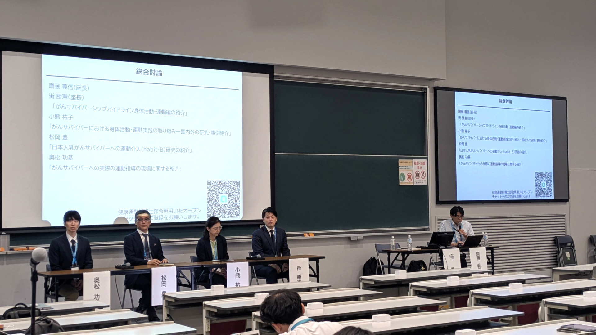 立命館大学びわこ・くさつキャンパスで開催された第79回日本体力医学会大会(9月17~19日)「健康運動指導士部会企画: がんサバイバーに対する身体活動・運動の重要性と健康運動指導士が果たす役割」で、齋藤が座長を務めました。